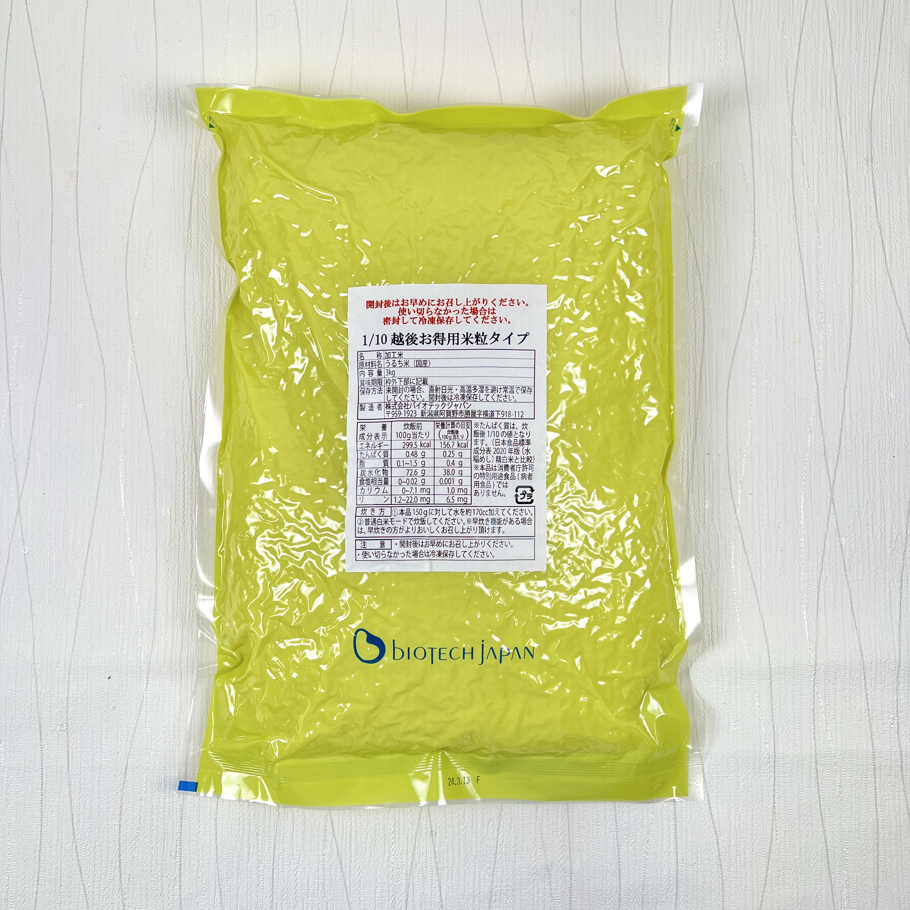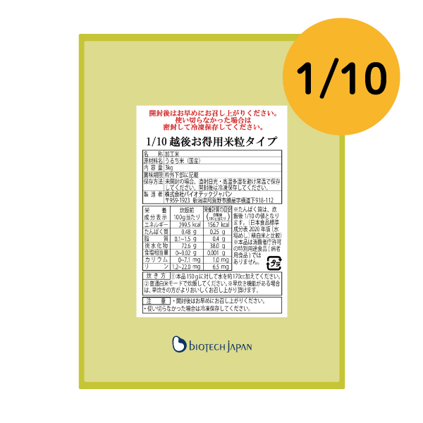 業務用サイズ(3㎏)でコストカットすることで、1食(炊飯後180g)あたり、越後シリーズ史上最安値の238円(税込)!また、包材を極めてシンプルにすることで、コストカットを実現いたしました!
